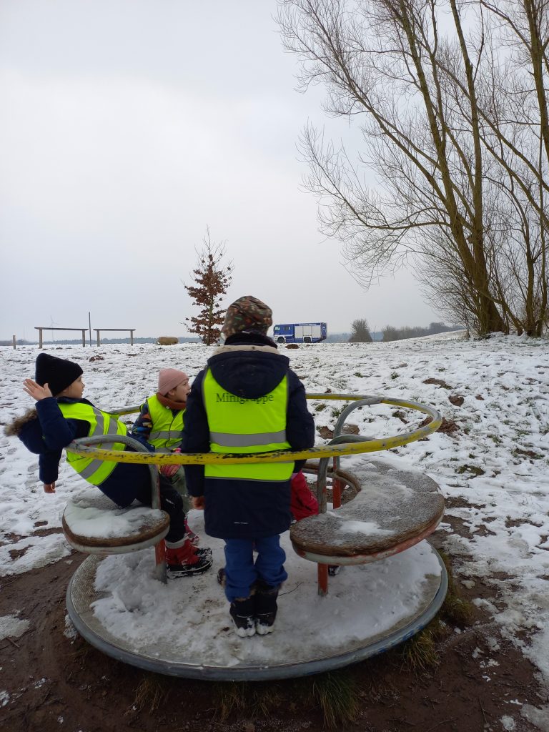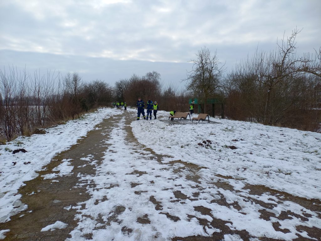 Obwohl der Schnee die Suche nicht vereinfachte (da es sich um ein stark frequentiertes Gelände handelt, waren überall Fußabdrücke), und anwesende Passanten nicht gefragt wurden, ob etwas aufgefallen wäre, ging die ganze Aktion doch schneller vonstatten als geplant, sodass noch genug Zeit übrig blieb, um sich auf dem Spielplatz zu entspannen, bevor es mit GKW und MTW zurück in den OV ging.